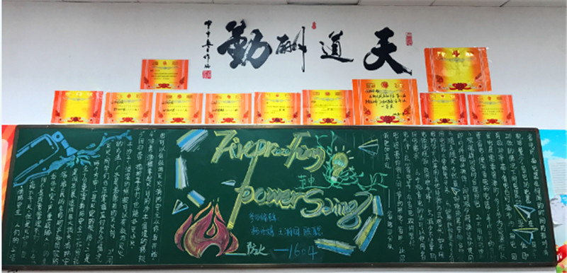 G1603班用英文板报的形式给大家防火及防电警示,图文并茂,生动形象。