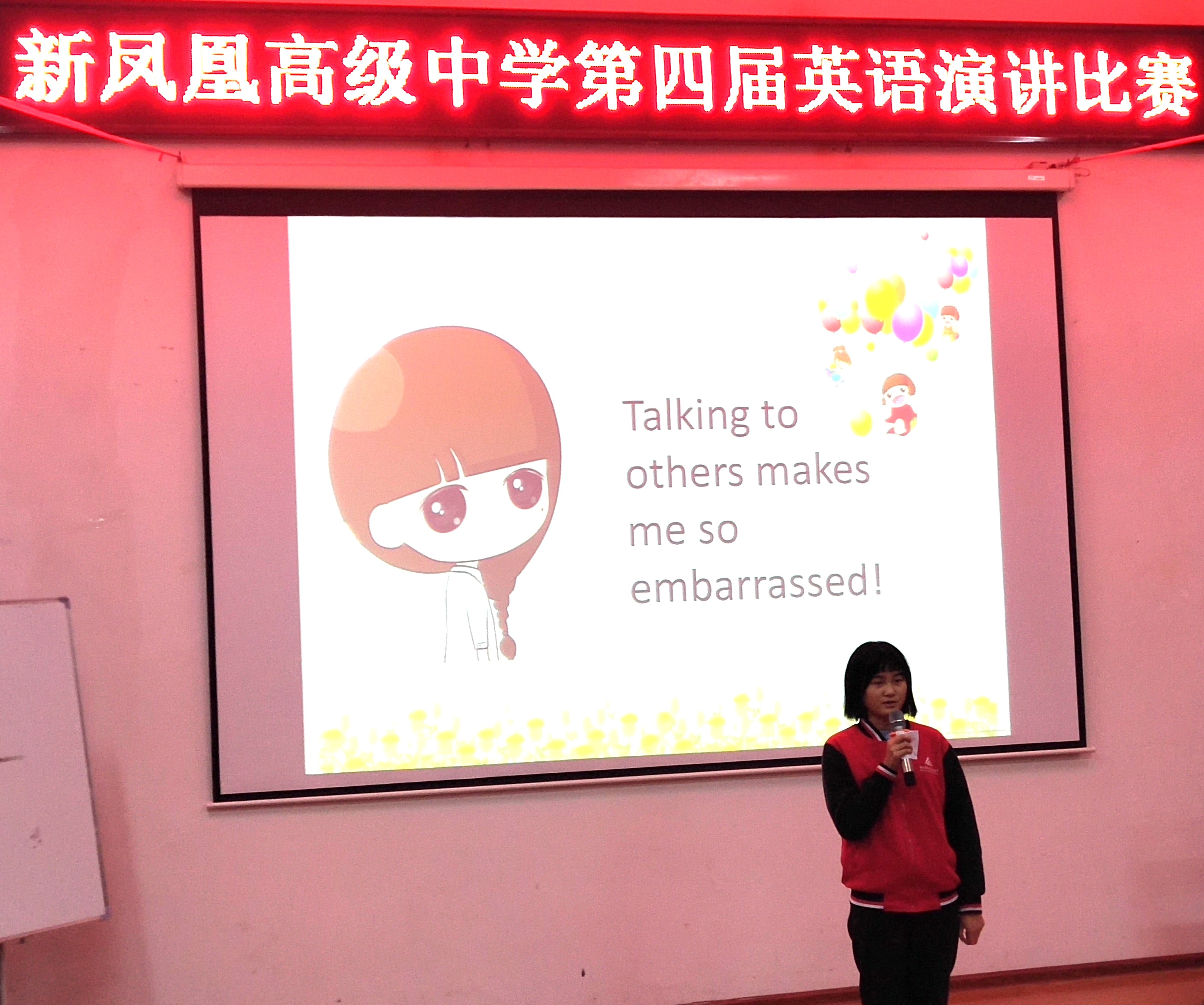 本次英文演讲比赛主题是“____makes me____”;选手们自主发挥,畅享idea。十二位选手轮番登场,他们紧扣主题,发表了自己的精彩演讲。流利的英语使人听起来心情愉悦!个别选手可能是因为紧张,稍有卡顿,但在现场观众的鼓励下也能顺利地完成演讲。对于选手的精彩演讲,观众也从不吝啬掌声,现场多次响起如潮搬的掌声!
