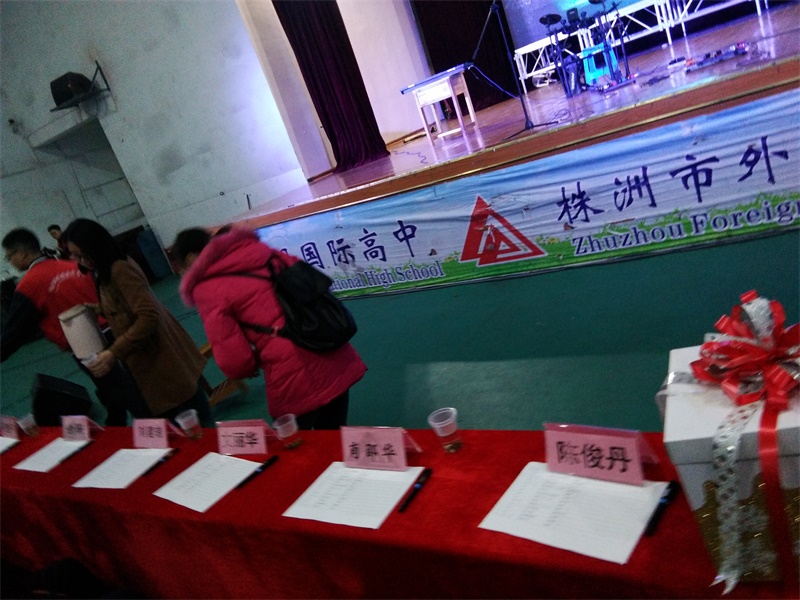 负责晚会抽奖礼品发放的肖媛老师正在忙着给学生发放奖品