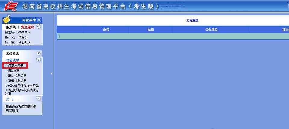 Step 6: 点击左边下拉菜单中的诚信承诺书。