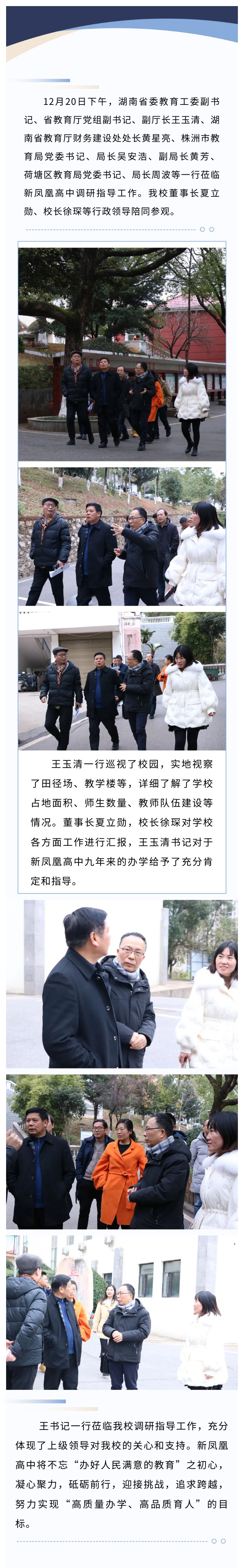 湖南省委教育工委副书记、省教育厅党组副书记、副厅长王玉清一行莅临株洲新凤凰高中调研指导工作