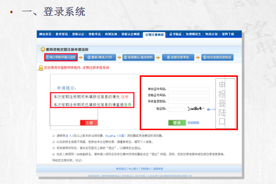 教师使用IE7.0以上版本浏览器登录“中国教师资格网”(需输入网址,不可百度搜索网站,